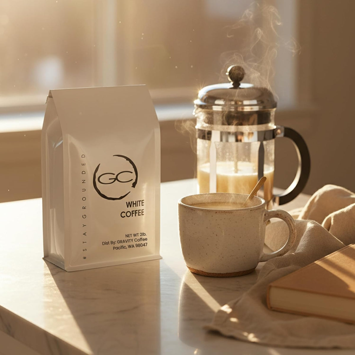 White coffee can also be brewed in a French press for a slightly fuller mouthfeel.